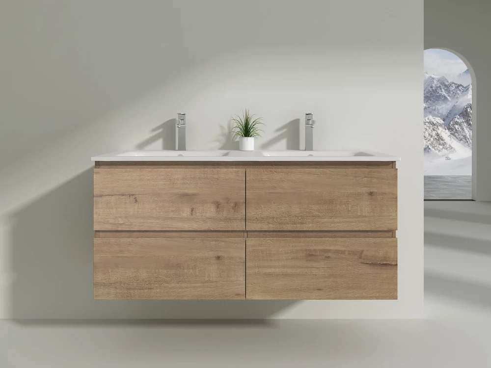 Nasze meble z linii DIJON są wyposażone w 4 przestronne szuflady z systemem cichego domykania soft close oraz dopasowaną podwójną umywalkę ceramiczną o grubości 2 cm typu slim z głębokimi komorami.