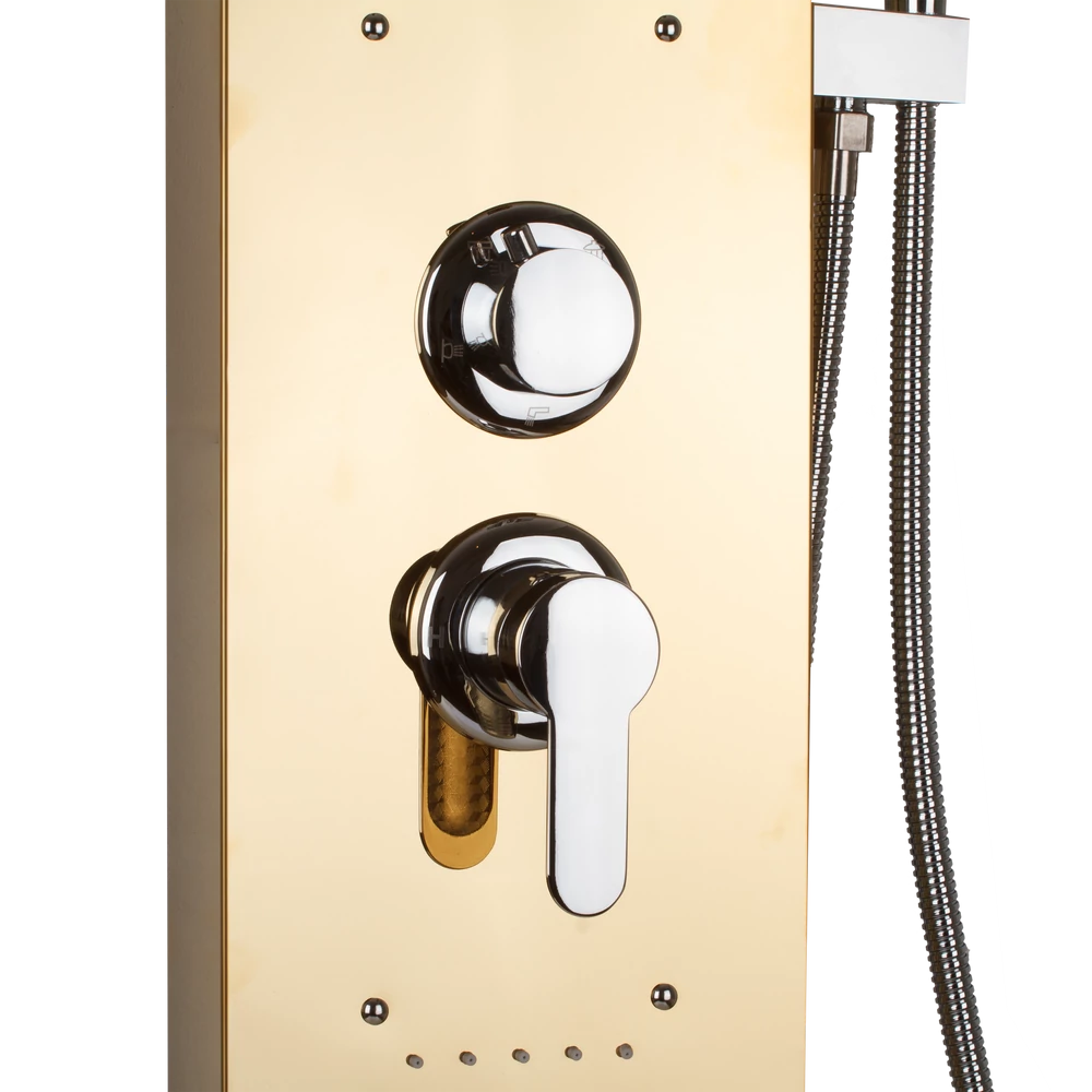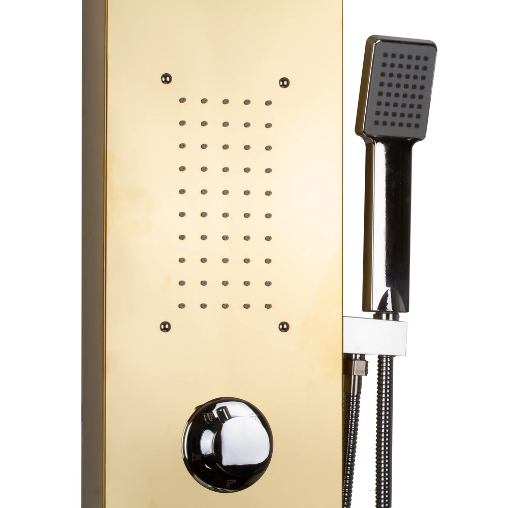 Skvělý doplněk do vaší koupelny! Náš sprchový panel je vyroben z nerezové oceli (304), což zaručuje dlouhou životnost panelu. Intenzitu vody lze snadno ovládat pomocí pákové mechanické směšovací baterie, přepínací ventil nabízí čtyři typy sprchových režimů, které lze snadno nastavit: tropický postřikovač, vodopádovou masáž, 2 integrované masážní trysky, elegantní chromovou ruční sprchovou hlavici. Silikonové trysky a hadice z nerezové oceli jsou odolné proti usazování vodního kamene. Design moderní karoserie sleduje nejnovější trendy, jejichž jedním z důležitých prvků je to, že zakřivení hlavice postřikovače zajišťuje, že nastavíte výšku dokonalého proudu vody. Zažijte to s tímto systémem sprchových panelů v čistém stylu. Nerezová ocel 304 díky svému složení nerezaví, což má za následek odolnost proti korozi ve srovnání s nerezovou ocelí řady 201 používanou jinde. Balíček obsahuje také všechny součásti potřebné k instalaci a komplexní průvodce instalací.