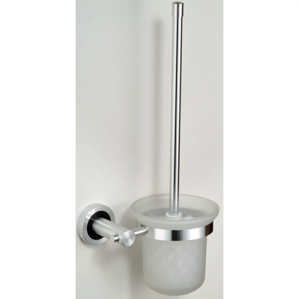Produkt stanowiący akcesoria łazienkowe o klasycznym i czystym designie. Łącząc dodatkowe elementy z czarnymi wstawkami linii produktów NOIR, możesz skomponować kompletny zestaw według swojego pomysłu, dzięki czemu będziesz mógł stworzyć kompletną całość w swojej łazience. Trwałą jakość użytego materiału aluminiowego zapewnia proces anodowania zastosowany podczas produkcji. Jest to proces obróbki powierzchni, który zapobiega dalszej korozji materiału aluminiowego i czyni go bardziej odpornym na wpływy zewnętrzne (zarysowania, zużycie, korozja). Powierzchnie pomalowane w ten sposób są zwarte i nieusuwalne. W opakowaniu znajdują się wszystkie elementy niezbędne do mocowania. Pojemnik na szczotkę WC posiada piaskowane szkło.