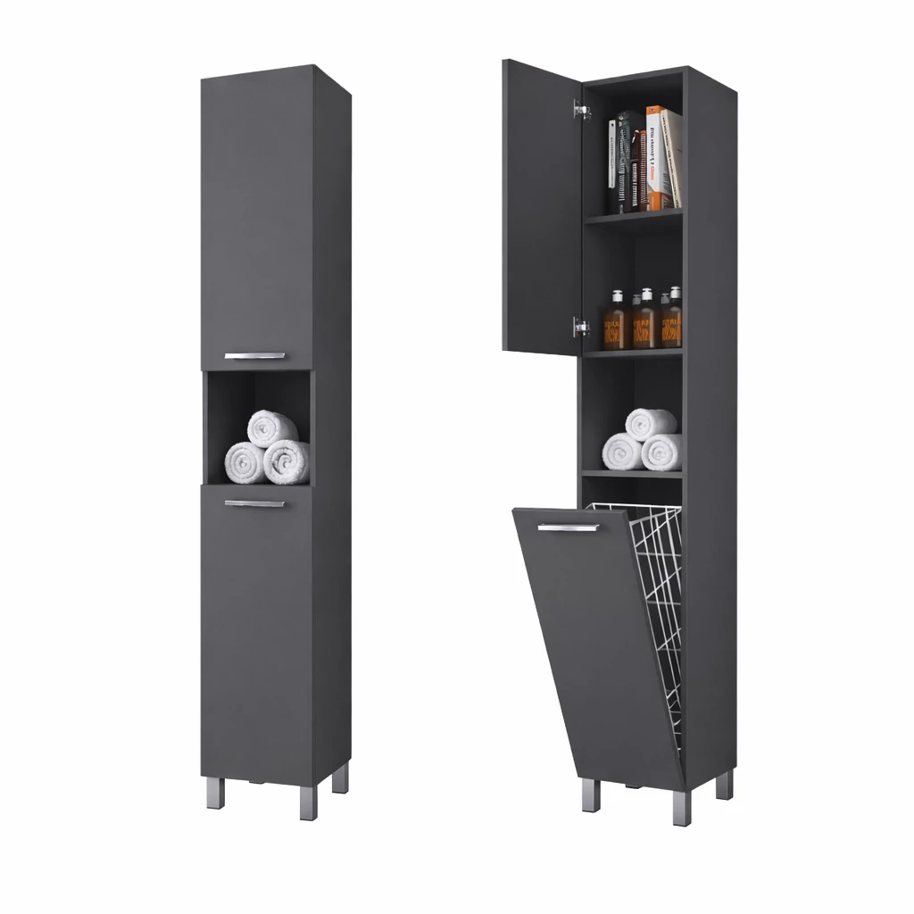 NORMANDIA 30 || Matowa antracytowo-szara szafka łazienkowa z koszem na pranie, schowkiem i półkami
