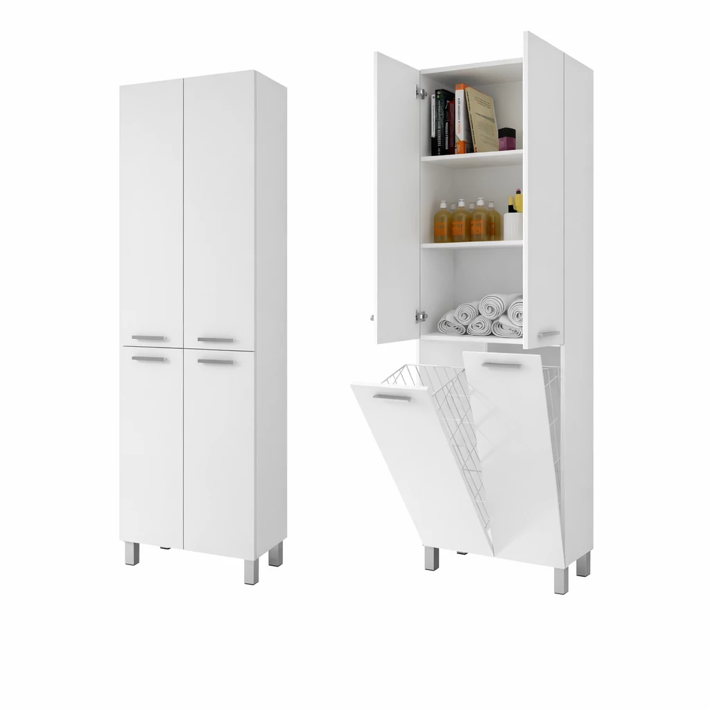 - Wykonanie: z koszem na pranie, schowkiem i półkami