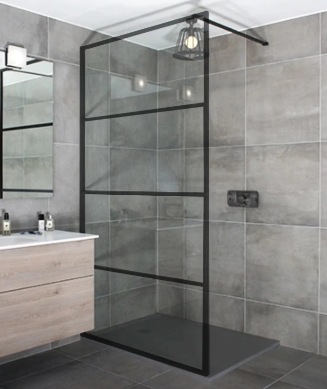 Nasze ścianki prysznicowe zapewniają klarowny i elegancki wygląd również w Twojej łazience. Poza tym, nasze produkty są dostępne w szerokiej gamie barw i rozmiarów, są również niezwykłe łatwe w instalacji. Szyby bezpieczne o grubości 8 mm oraz stal nierdzewna przekładki zapewniają długą żywotność ściany prysznica oraz wygodne i bezpieczne użytkowanie. Powierzchnia szklanej płyty również została poddana NANO powłoce, podczas której stała się bardziej odporna na kamień, mydło i inne osady, dzięki czemu niezwykle łatwo utrzymać ją w czystości. Pręt dystansowy ze stali nierdzewnej można przyciąć na dowolny wymiar, dzięki czemu głębokość montażu nie jest ograniczona. Pręt dystansowy można ustawić w zakresie 68-120 cm. Dzięki zastosowanym komponentom, kierunek montażu jest uniwersalny, dlatego można je montować zarówno w kierunku prawym, jak i lewym. Możliwe nierówności ściany można doskonale wyeliminować, ponieważ profil ściany można regulować o 1,5 cm. Nasze ścianki prysznicowe można montować zarówno na podłodze wyłożonej kafelkami, jak i na brodziku prysznicowym.