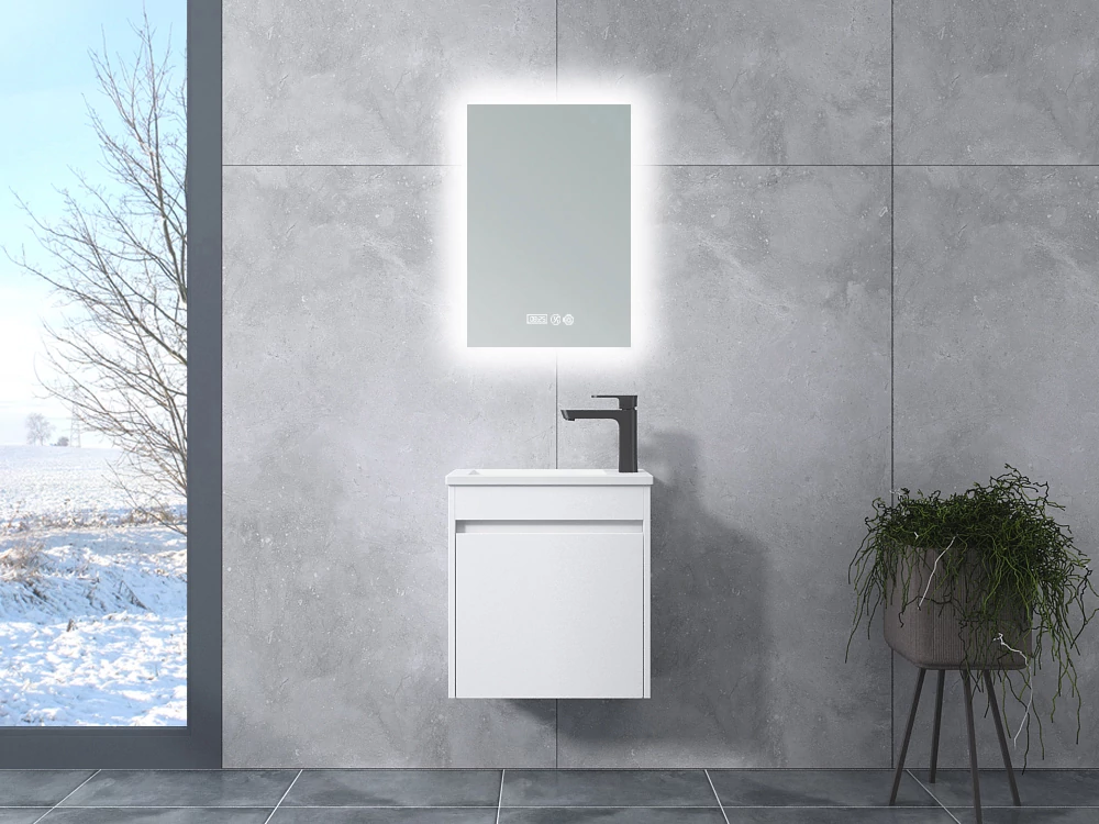 Nasze meble ZAMORA wyposażone są w jedną przestrzeń do przechowywania pod umywalką oraz dopasowaną, cienką (2 cm), głęboką ceramiczną umywalkę typu slim. W skład zestawu wchodzi również lustro LED z panelem dotykowym.